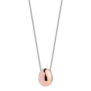 Sterling Silver Rose Gold (14K 1mc) 12x31mm Egg Pendant on 55cm + 5cm ext. Chain,